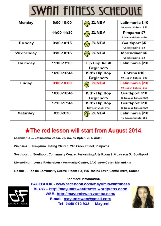 SWAN FITNESS SCHEDULE
