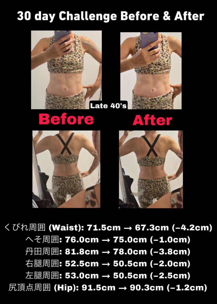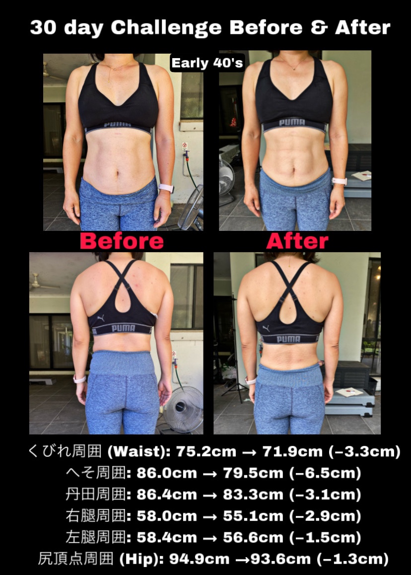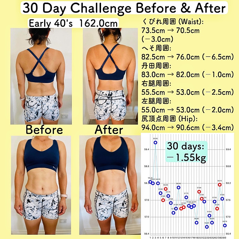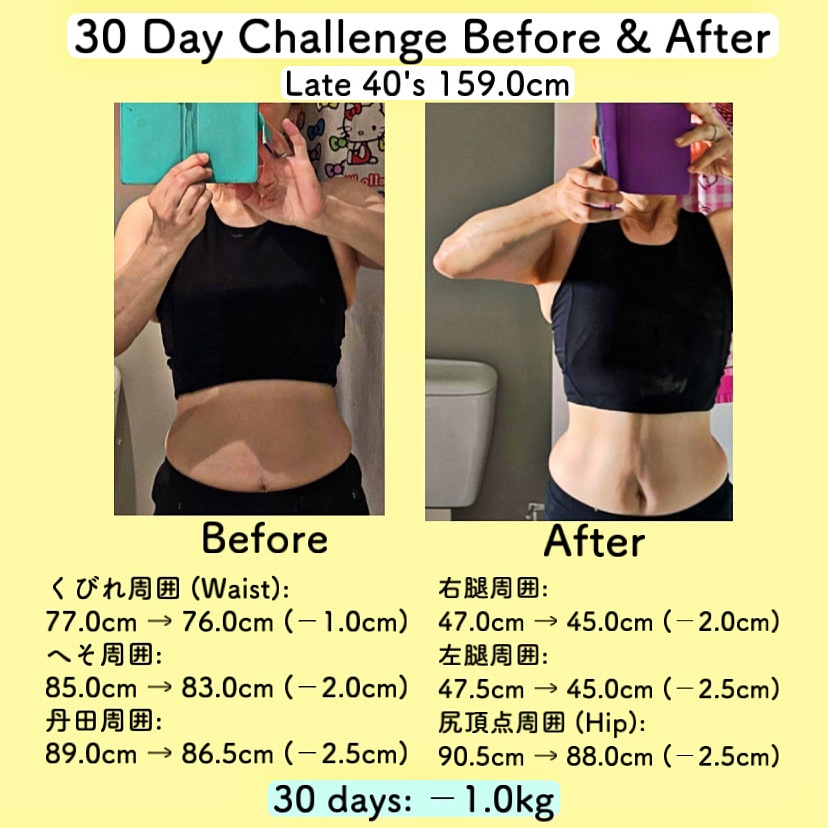 この30日チャレンジは毎月行っているもので、減量ではなくボディメイク(引き締め)を目標にしています。
