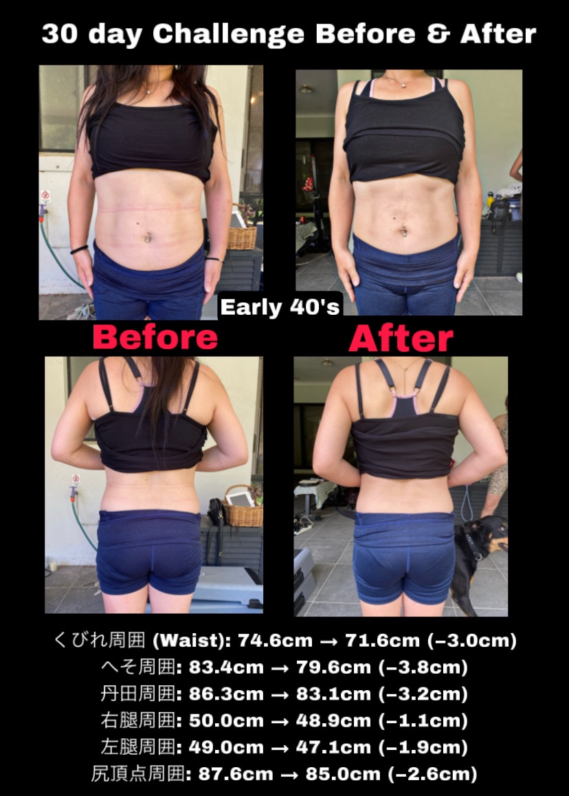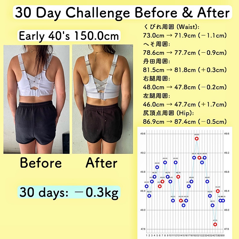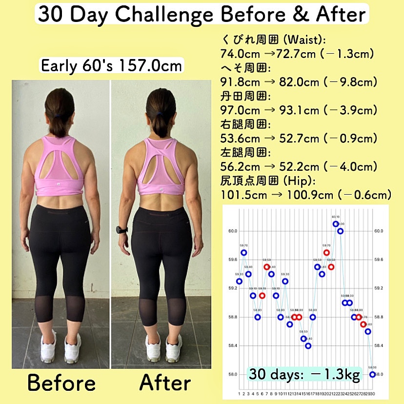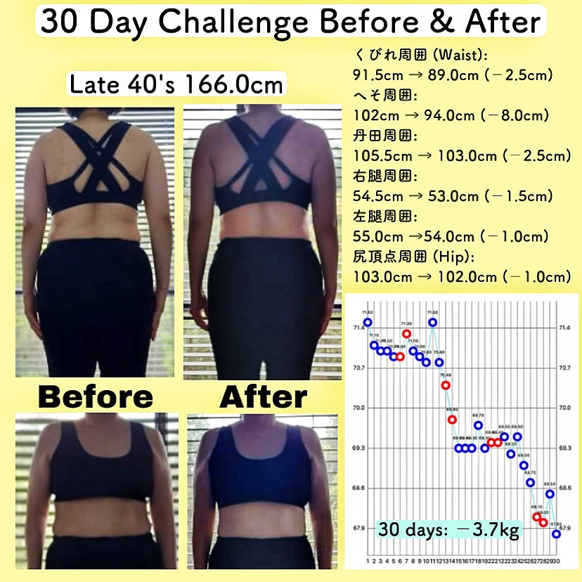 この30日チャレンジは毎月行っているもので、減量ではなくボディメイク(引き締め)を目標にしています。