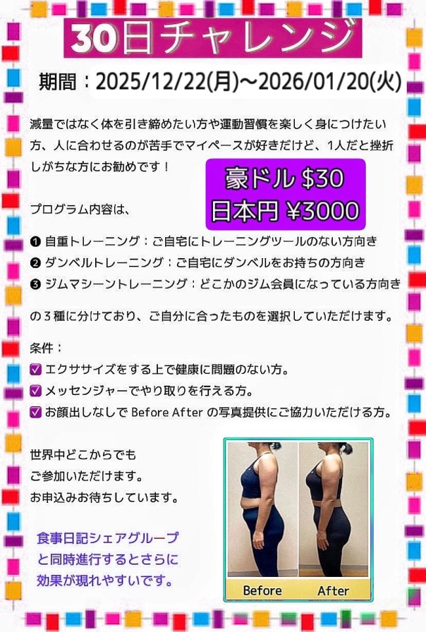 次回の30日チャレンジは、2025年12月22日㈪からスタートです。お申し込み受付中‼️