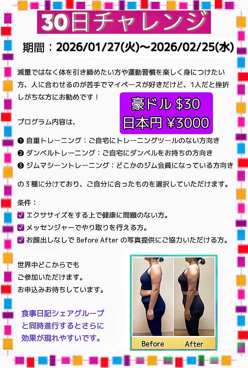 次回の30日チャレンジは、2026年1月27日㈫からスタートです。お申し込み受付中‼️