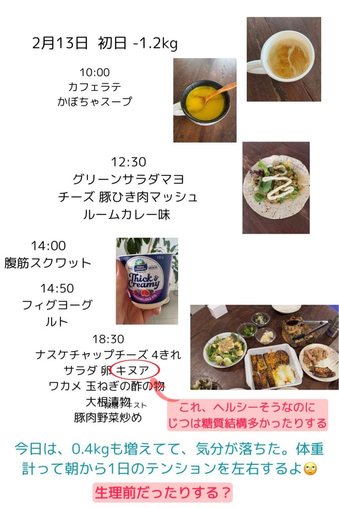 食事内容を人に見せるとなると、大抵の人は自然に食事量が減っていきます。