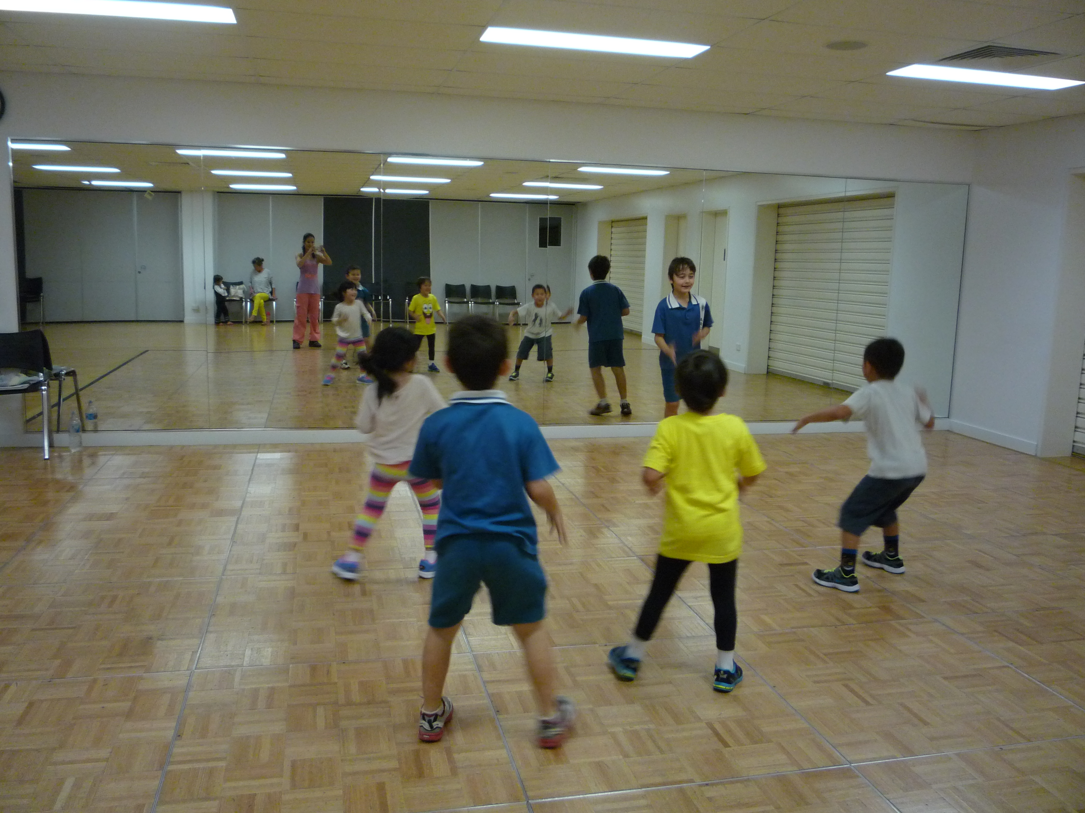 これは小さい子たちのクラスで、『シャイニングスター』という振り付けゲームをしたときのもの。前に出た子が自分の好きな振りを自由に踊って、それを皆が真似る。疲れたら(←これは私が決めたw)、次の子にバトンタッチ、次の子が前に出てまた違った振りを踊って、皆もそれを踊る、というものなんですが、けっこう子どもウケがいいみたいです♪