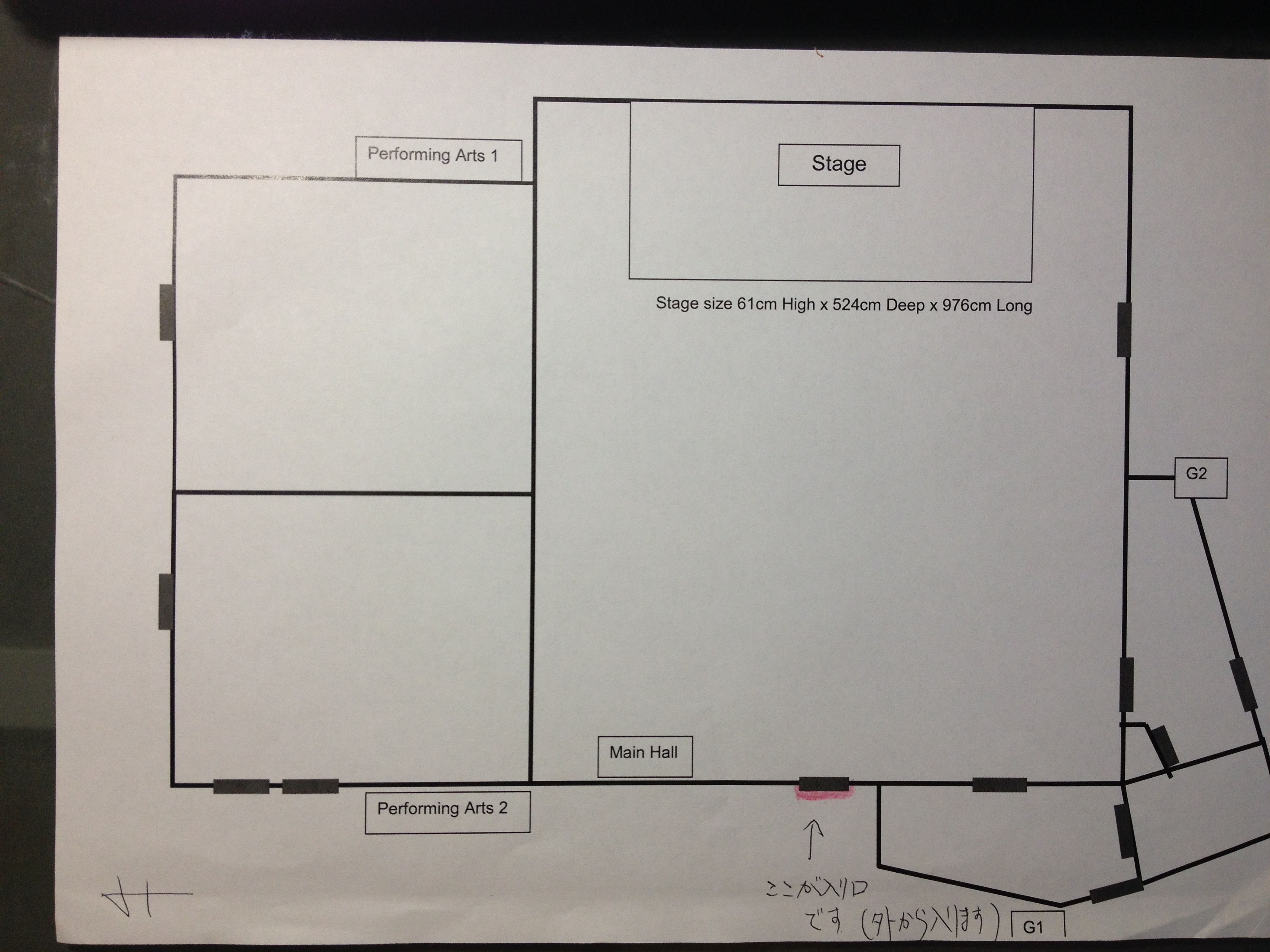 会場はこちら。見よ!!方向音痴の私が手がけた渾身の力作、手書きマップを~~ww