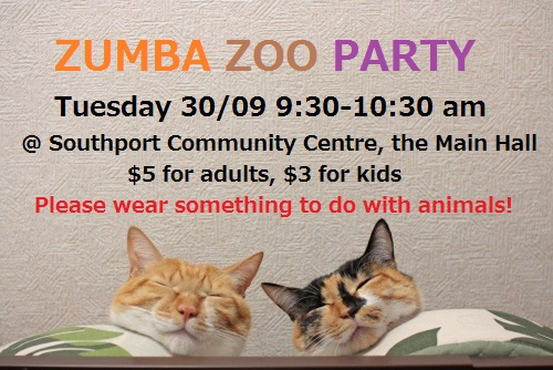 ZUMBA ZOO PARTY?何なの、それ?と聞かれる方が多いのですが、ZUMBAレッスンです(笑)!いつもは45分のレッスンを、この日だけ60分に延長、いつものパフォーミングアーツルーム2ではなく、隣の大きな部屋、メインホールで行います。でも参加料金はいつもと変わらず、$5でやらせていただきます。
