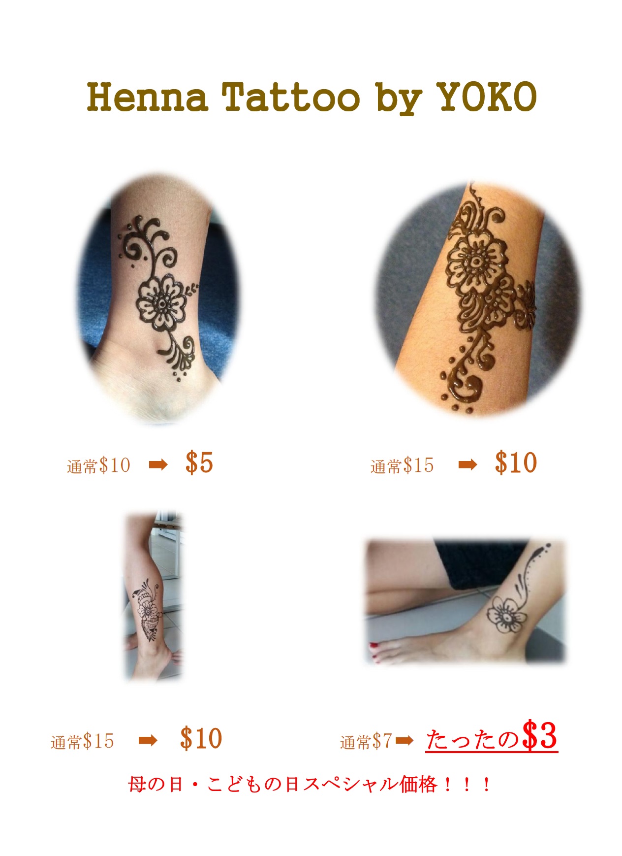 そして、プレイグループ『とわにー』と『SWAN FITNESS』のコラボイベントでは、もうお馴染みの、YOKOさんのへナタトゥーショップ。