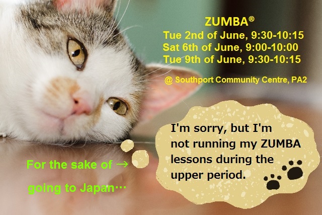 誠に申し訳ございませんが、日本へ一時帰国のため、上記のZUMBAレッスンをお休みさせていただきます。