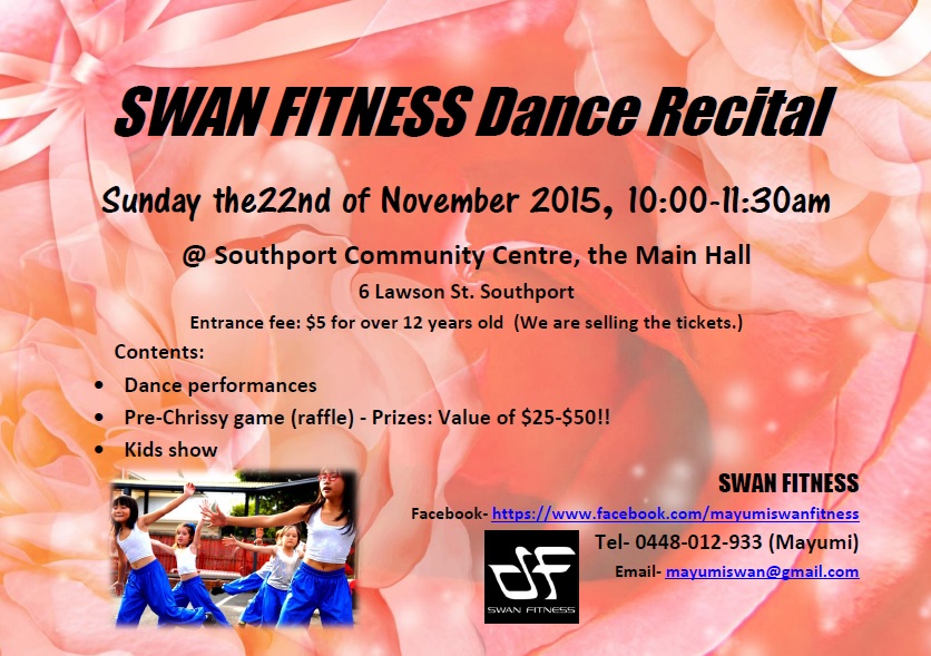 SWAN FITNESSでは、ダンス発表会(子ども&大人用)を下記の通りに予定しており、お手伝いしてもらえるボランティアスタッフを募集しています。
