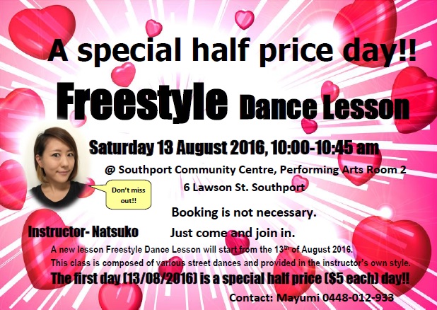 A special half price day for Freestyle Dance Lesson 2 Published on 2016年8月11日 in 人に流されない生き方フル解像度 (618 × 438) ← 前へ 次へ →