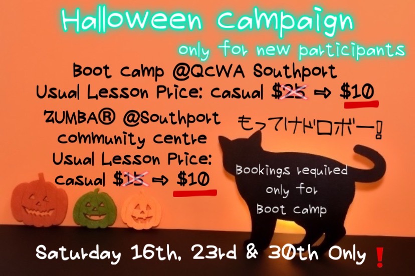 上記のZUMBAレッスンにハロウィンコスチュームで参加していただけたら嬉しいです!!
