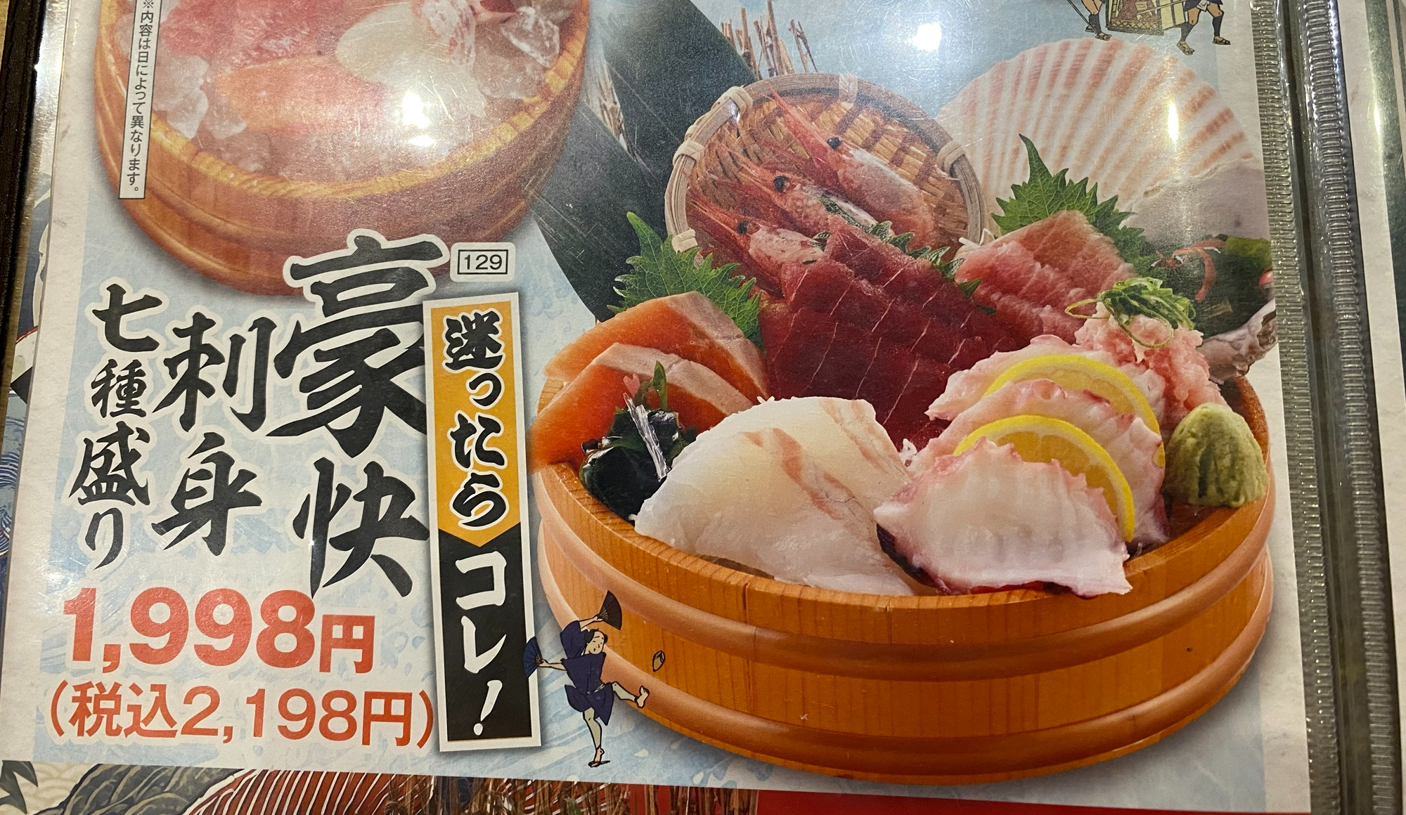 私が食事制限しているという理由で、選んでくださったお店、『目利きの銀次』である。