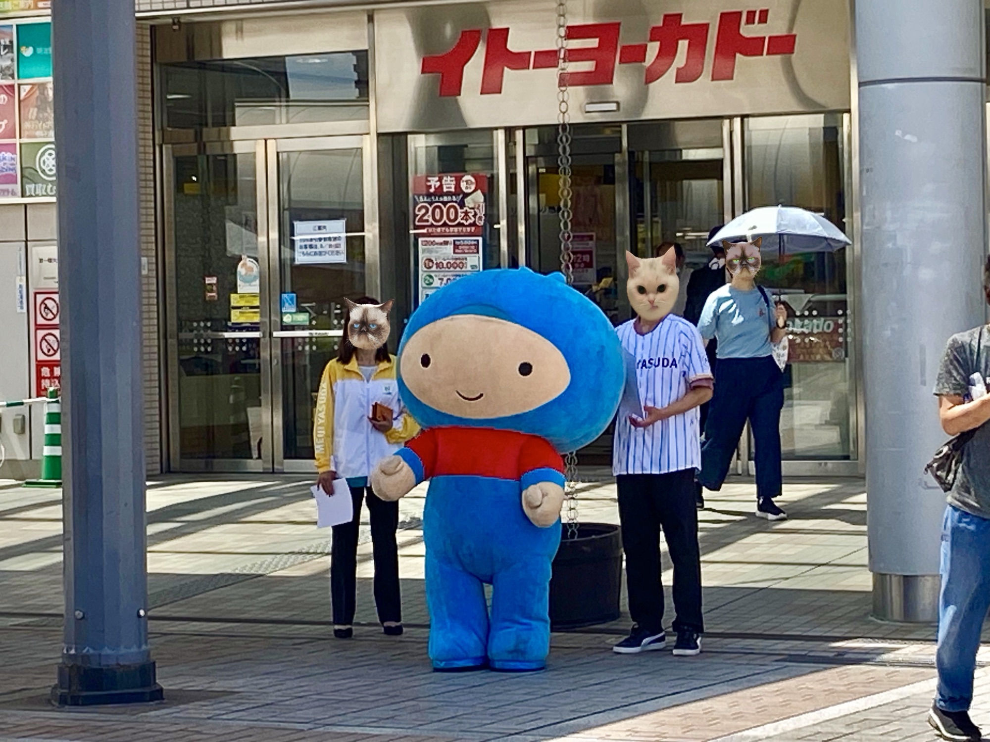 イトーヨーカドーのほうへ歩いていくと、なんかの着ぐるみキャラクターが一生懸命通行人に手を振っている姿に遭遇した。
