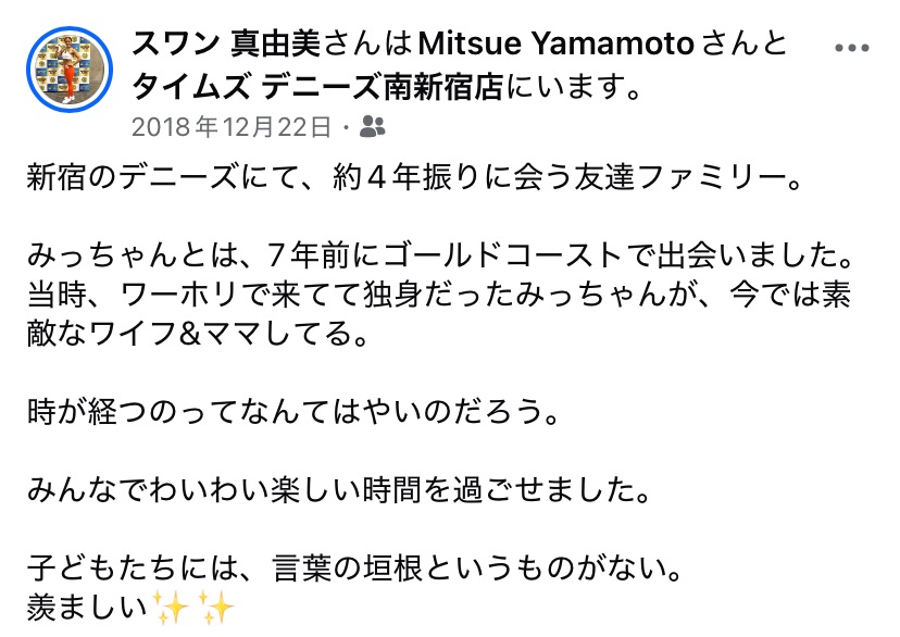 お互いの子どもがまだこんなに小さかったんだもんね。時が経つのはなんて早いのだろう・・・