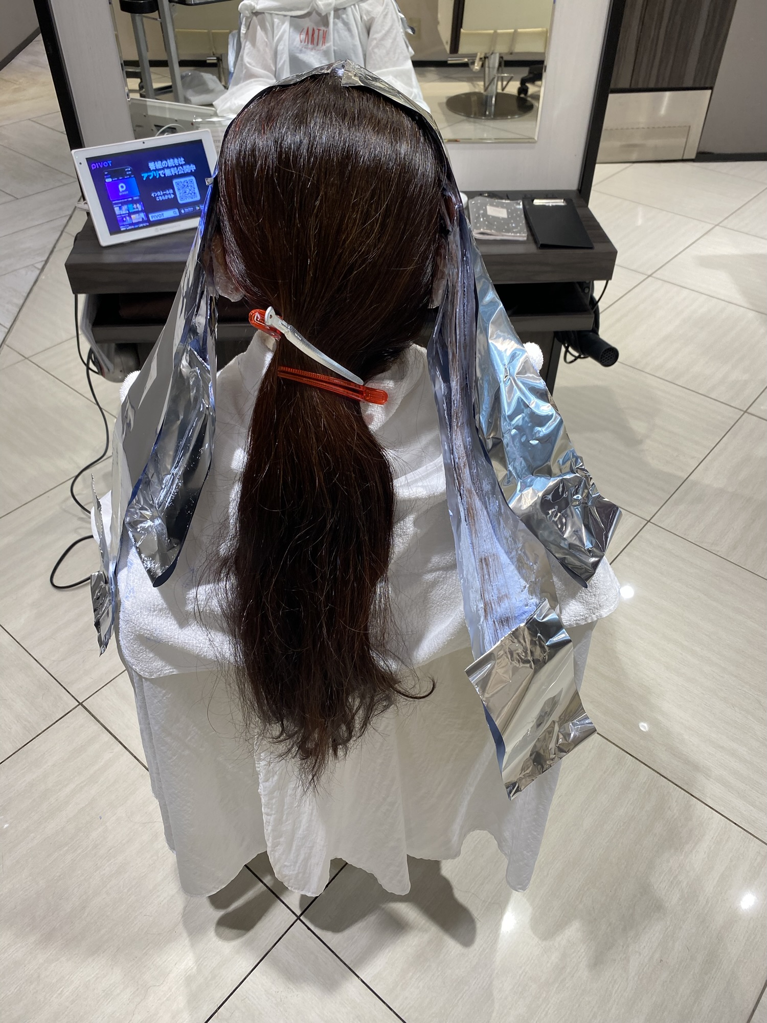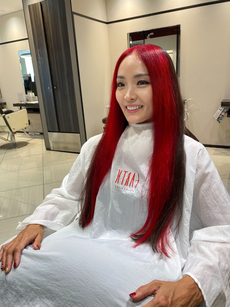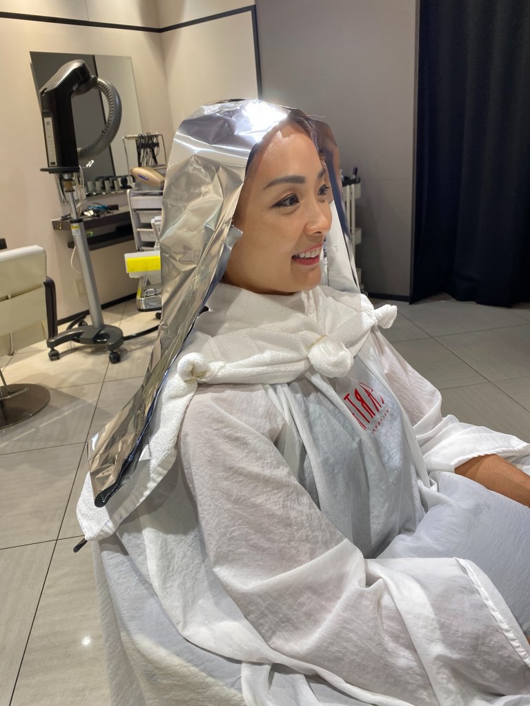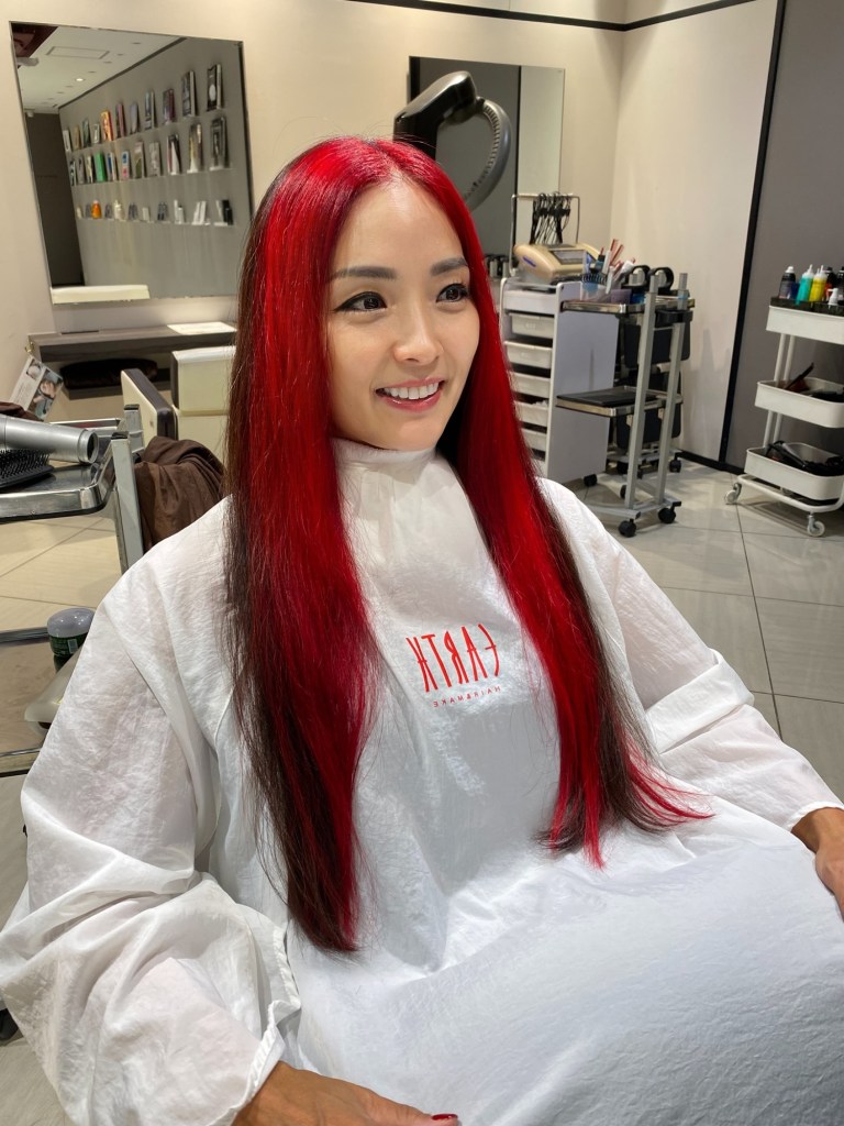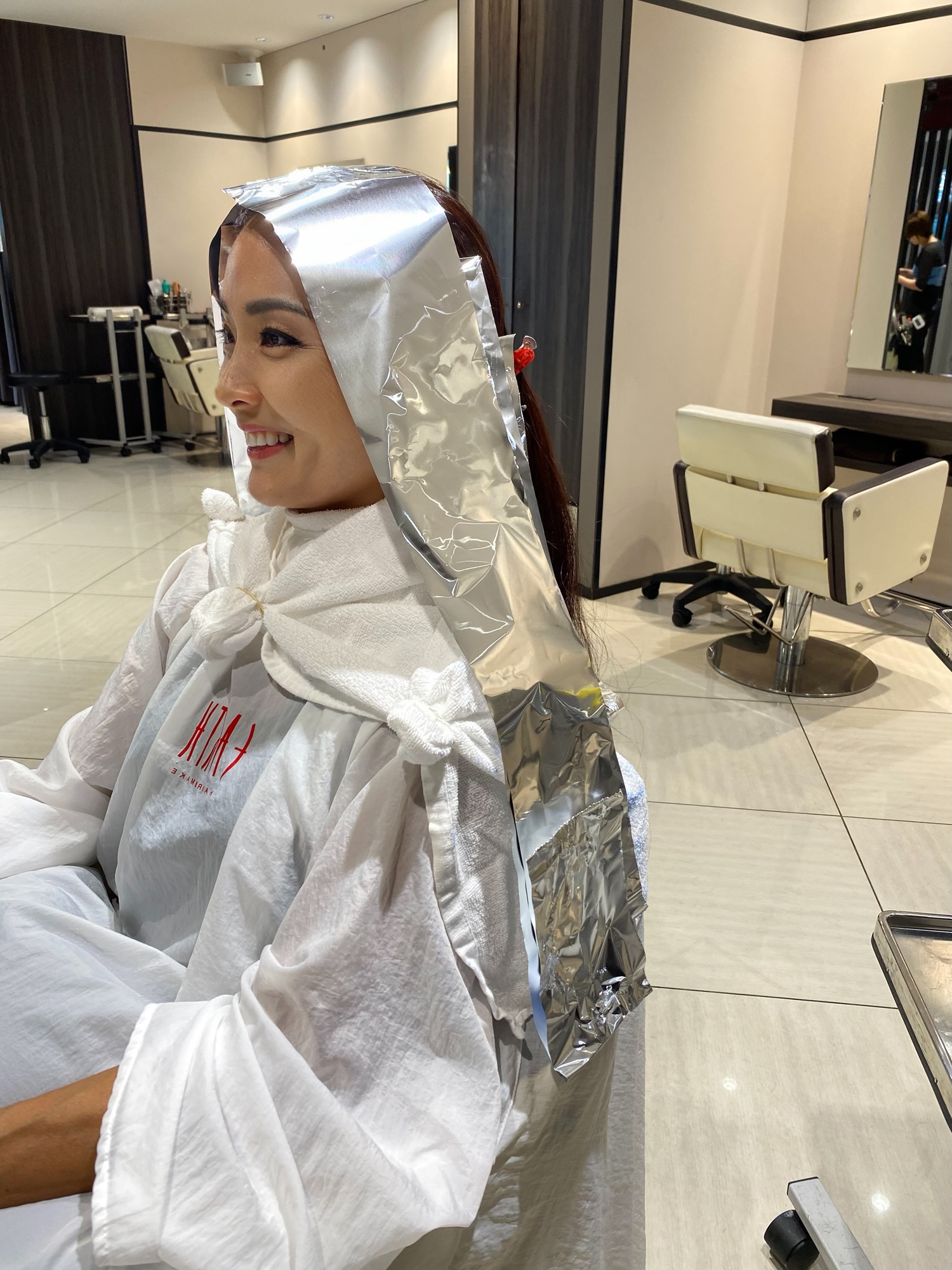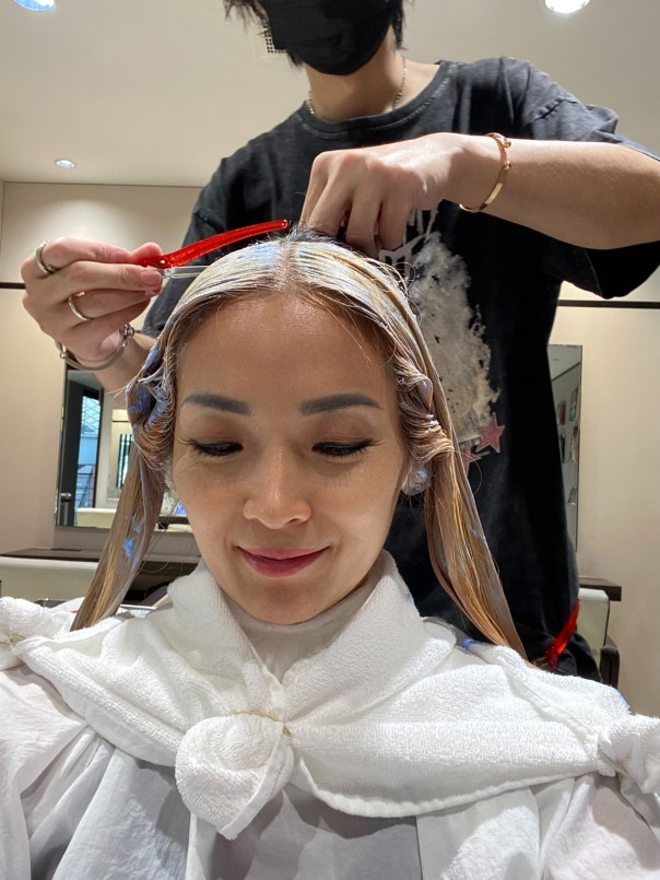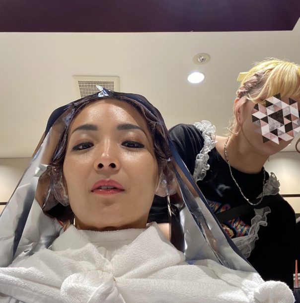 今までは、髪の生え際をリタッチしてもらうだけであったのを、この日は赤髪部分全体をブリーチし直してさらに明るい赤色にしてもらう予定であった。