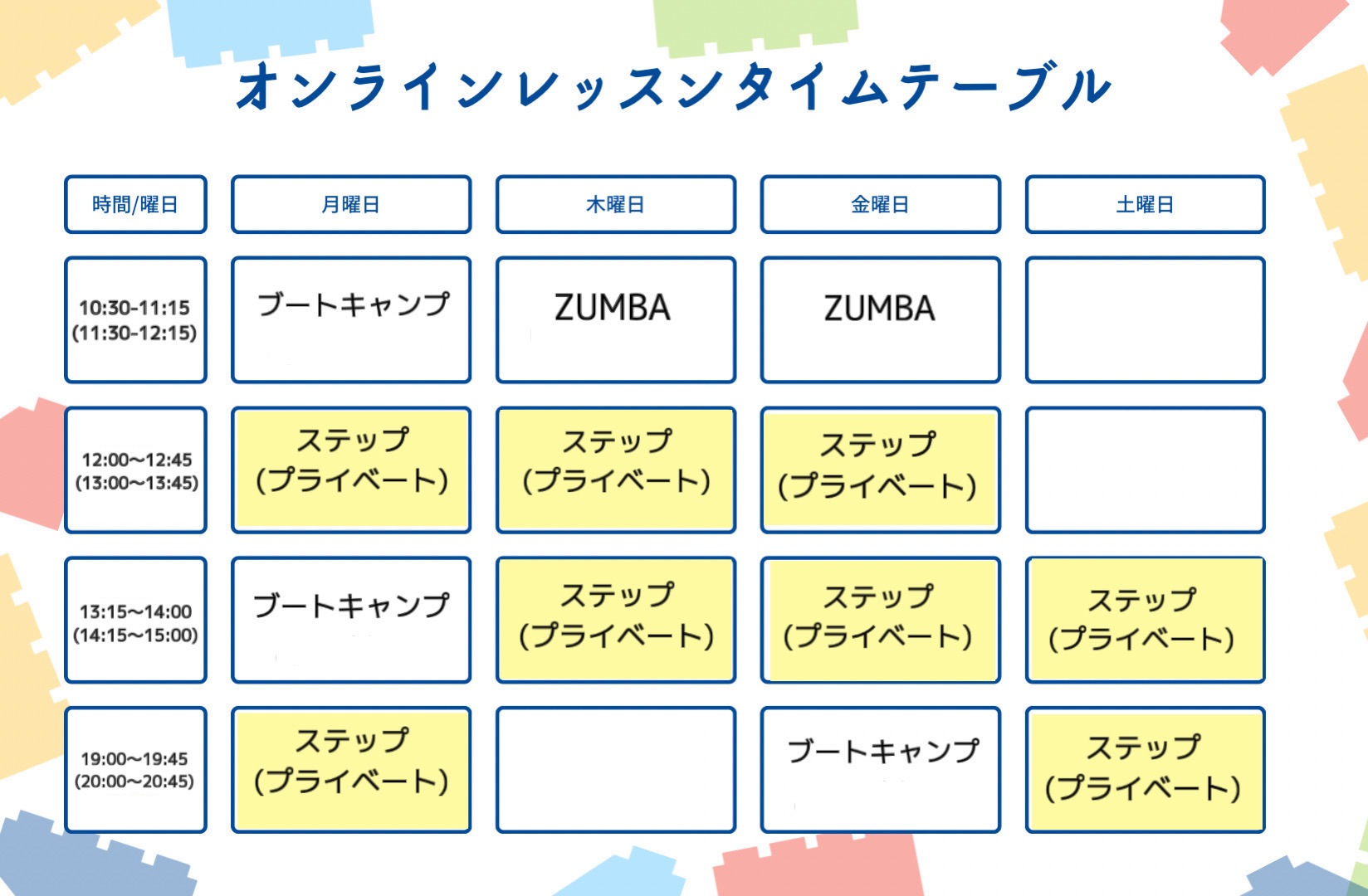 黄色のプライベートステップレッスンの枠もトライアルZUMBAとしてご予約いただけます。