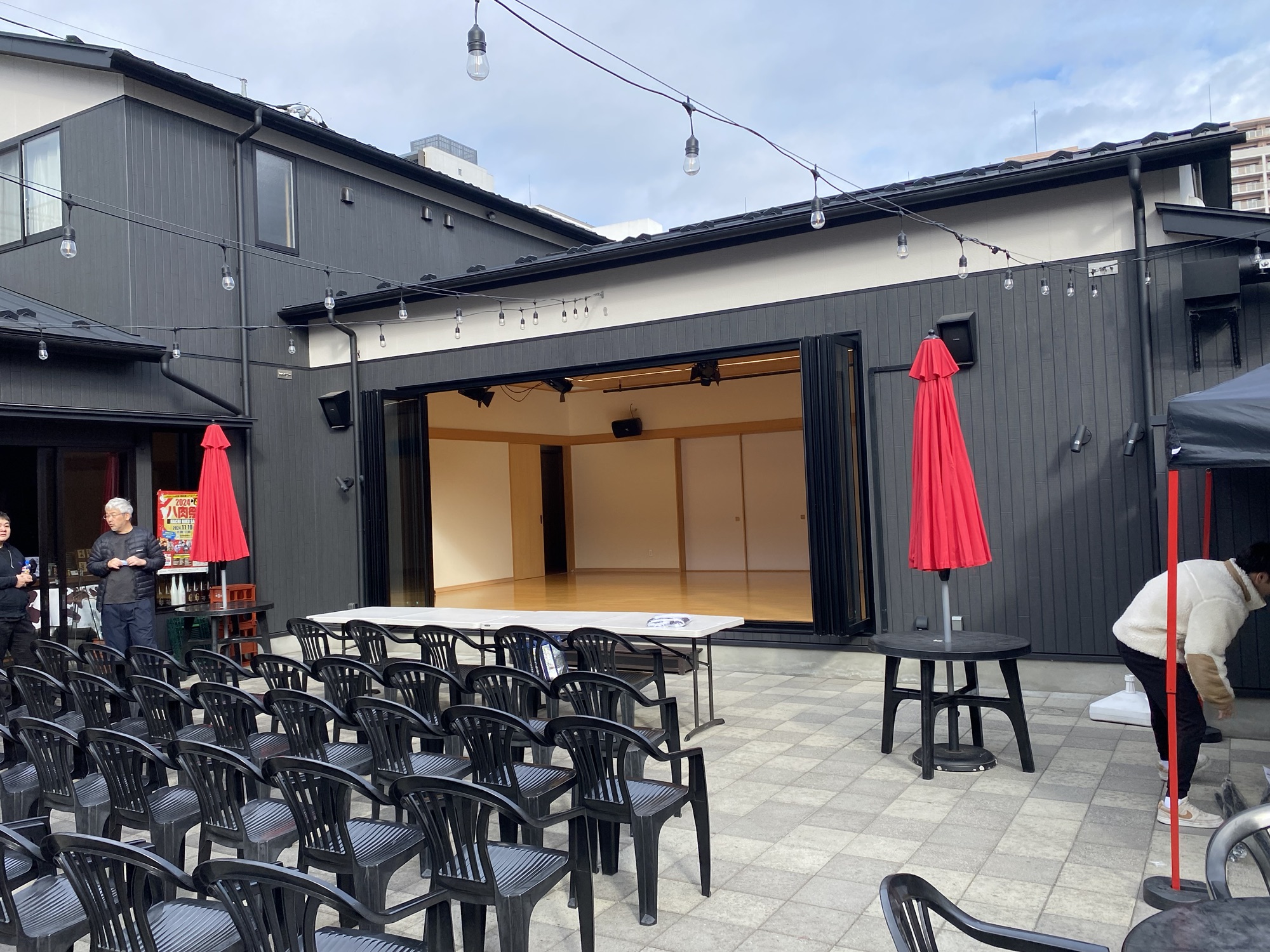 会場は桑都(そうと)テラス。和風で寄席みたいな造りの建物であった。