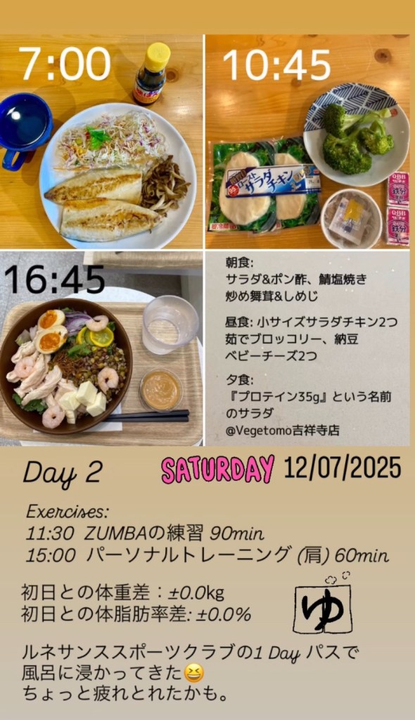 それから、山の日の今日は、午前中は30日チャレンジと食事日記シェアグループのまとめ作業を宿で行い、午後からBeyond吉祥寺にてパーソナルトレーニング。