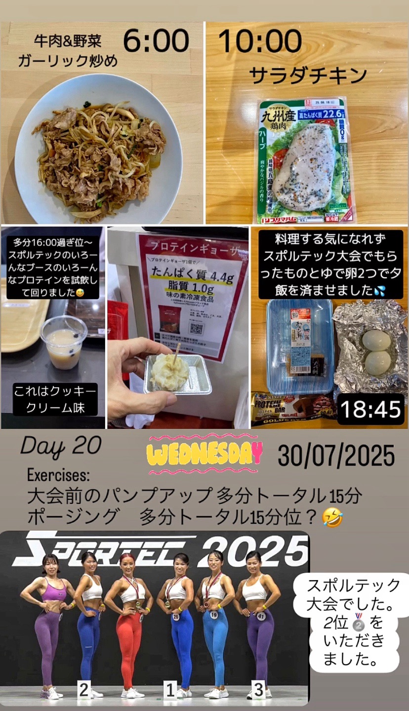 激戦区のスポルテック大会でメダル獲得できたことがとにかく嬉しい。去年は6位入賞(マッスルゲート (日本一人旅 2024 17日目))であったので、今年は少し前進できたように思う。