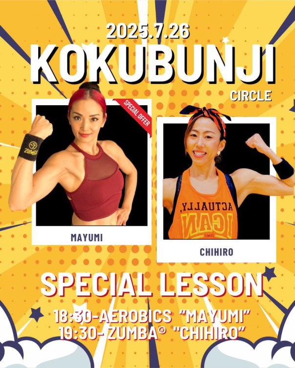2025年7月27日㈯、国分寺の金子ちひろインストラクターのZUMBAサークルにて、エアロビクスをやらせていただいた。正確に言うと、ちひろさんのZUMBAの前に時間を設けていただき、エアロビクスを45分担当させてもらったのである。