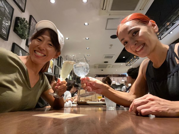 昨年はゆっくりお茶やランチを一緒にとる時間がなく「来年こそは!」とお別れしていたので、2025年は私が日本に帰国する前から、連絡は取り合っていたのだが・・・それがまさか大会で同じカテゴリー出場のうえ、ゼッケン番号も1番違いでステージで隣に並ぶことになろうとは!(笑)
