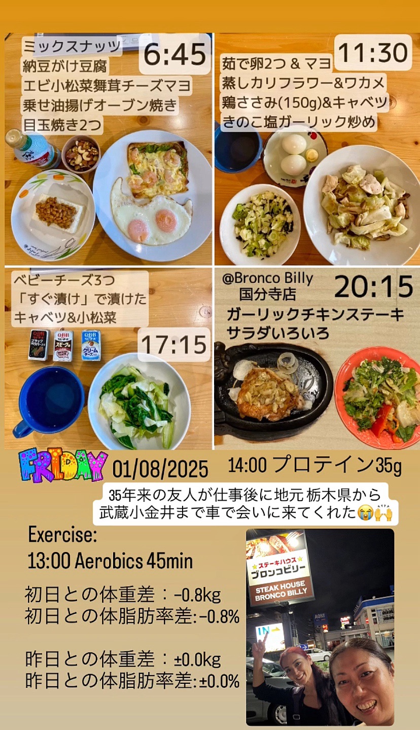 マッスルゲート東京スポルテック大会 2025 の2日後の金曜日の夜、35年来の友人、恵子氏が、仕事後に、地元栃木県から私の宿泊先のある武蔵小金井まで車で会いに来てくれた。