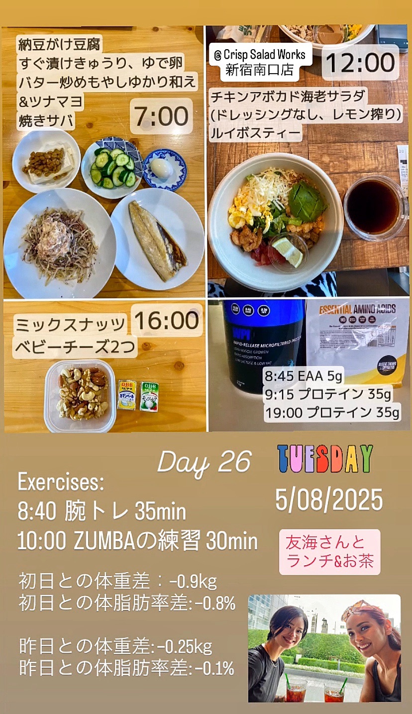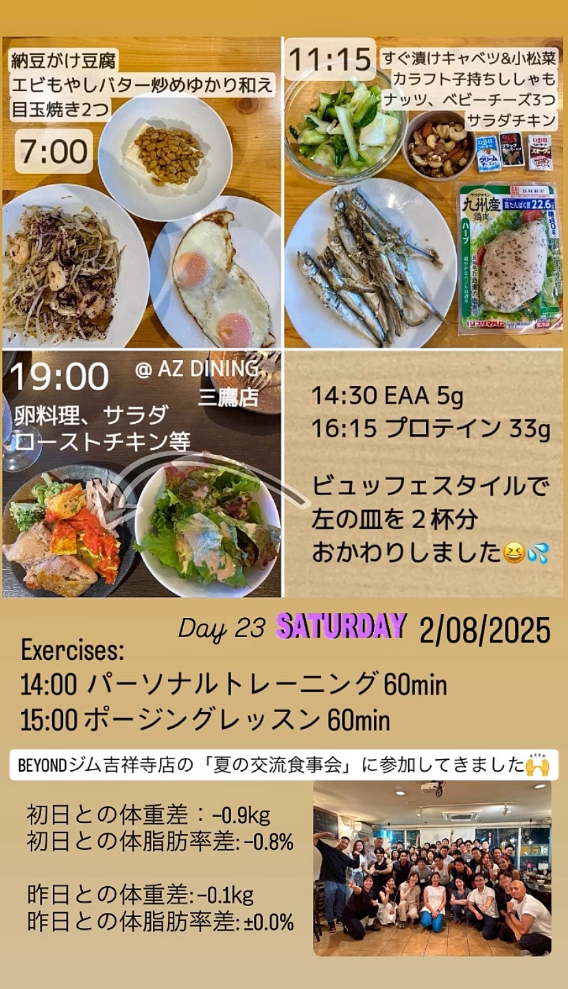 それから、山の日の今日は、午前中は30日チャレンジと食事日記シェアグループのまとめ作業を宿で行い、午後からBeyond吉祥寺にてパーソナルトレーニング。