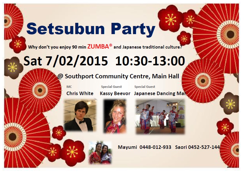 このイベントはZUMBAに何がなんでも参加しなきゃいけないの~?体力的に…という方、ご安心を!!とわにーさんとのコラボということで、フィットネスとは別に、お子様と一緒に楽しんでいただけるプログラムを、ご用意しております。節分ということで、『豆まき』、『鬼のお面作り』、『流しそうめん』。 お子さんだけでなく大人の方も楽しんでいただけるかと思います。ZUMBA以外のものに参加されたい方は、入場料など異なりますので(上のチラシをご参照ください)、とわにー代表、さおりさんにご連絡を。事前ご予約ですと、お得です!!